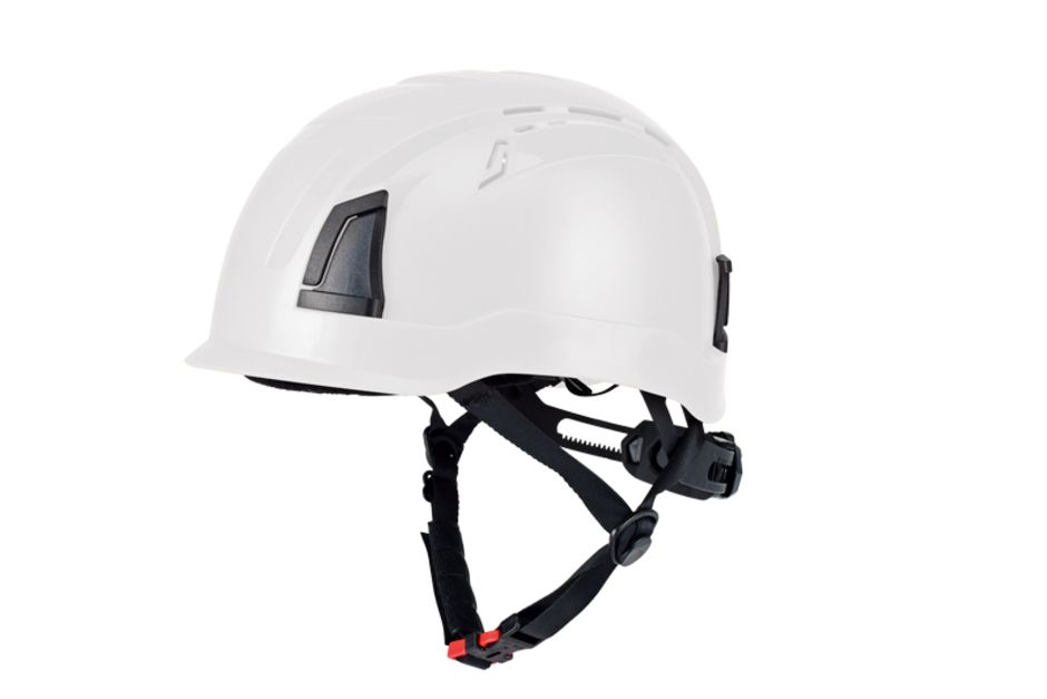 Bedeutender Unterschied zwischen Industrie- und Bergsteigerhelmen ist die Anforderung an die Haltekraft des Kinnriemens. Der Riemen eines Bergsteigerhelms muss mindestens eine Zugkraft von 500 N aushalten, damit der Verlust des Helms bei einem Sturz ausgeschlossen werden kann. Bei Industriehelmen muss sich der Kinnriemen spätestens bei einer Zugbeanspruchung von 250 N lösen, damit eine mögliche Strangulation verhindert wird. Der Kinnriemen des »Pro Fit« Höhenarbeitshelms »Pro Cap D! Rock« löst daher bei minimal 150 N und maximal 250 N aus.