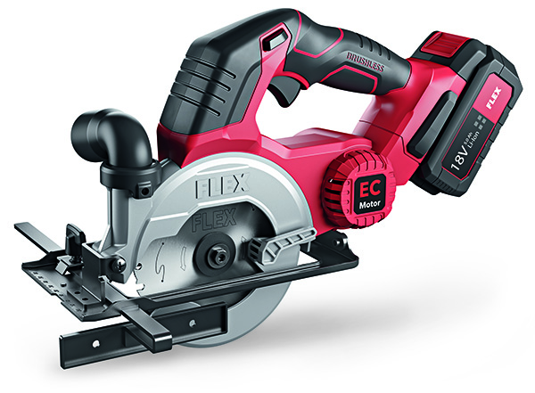 Beim Antrieb setzt FLEX bei seiner neuen Akku-Handkreissäge auf einen bürstenlosen EC-Motor. Dieser sorgt im Vergleich zu Geräten mit Bürstenmotor für eine deutlich höhere Leistung und längere Lebensdauer. Mit einem Gewicht von 3,2 Kilogramm inklusive Akku ist die Säge ausgesprochen leicht. Gepaart mit ihrer kompakten Bauweise ermöglicht dies ein ausdauerndes und ermüdungsfreies Arbeiten. Hierzu trägt auch der ergonomische Handgriff bei. Die Säge ermöglicht eine Schnitttiefe von maximal 46,5 Millimetern, die Leerlaufdrehzahl liegt bei 5.400 Umdrehungen pro Minute.