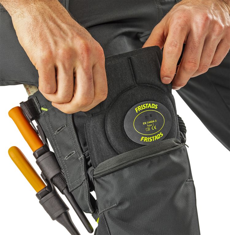 Ob Bodenleger, Installateur, Fliesenleger, Elektriker oder Trockenbauer – wer bei der Arbeit regelmäßig auf die Knie geht, kennt das Problem: Unbequeme oder verrutschte Kniepolster machen den Arbeitstag zur Belastung. Der Druck auf die Kniescheibe steigt, kleine Steine bohren sich durch das Material – und am Ende des Tages schmerzt nicht nur das Gelenk, sondern auch der Rücken vom ständigen Nachjustieren der Hose. Genau hier setzt Fristads mit einer durchdachten Lösung an: Alle Arbeitshosen des Herstellers verfügen standardmäßig über Kniepolstertaschen mit einer integrierten zweistufigen Höhenverstellung – eine zentrale Besonderheit, die den Unterschied macht.