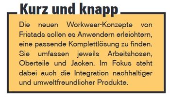 Insgesamt stellt Fristads sieben Konzepte vor: vier im Bereich Bau und Handwerk, zwei im Bereich Warnschutz und ein Konzept für Service und Industrie. Einige sind bereits bekannt, während andere komplett neu entwickelt wurden.
