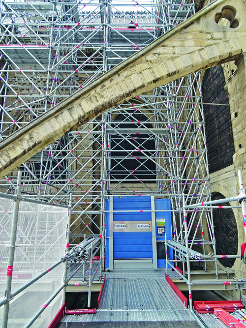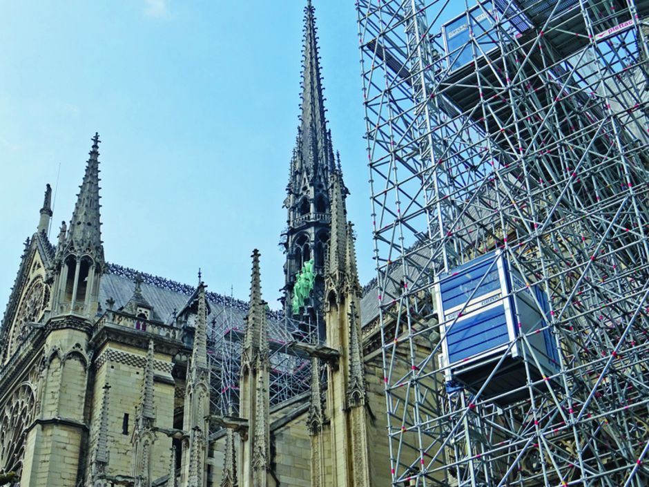 Mithilfe von zwei Personen- und Lastenaufzügen sowie einer Transportbühne soll die »Dame« auf der Seine-Insel Ile de la Cité wieder in Schuss gebracht werden. Um einen zügigen Ablauf der Renovierungsarbeiten zu unterstützen, hat Altrad Plettac Mefran zwei GEDA-Personen- und -Lastenaufzüge des Typs »Multilift P12 Comfort« sowie eine GEDA-Transportbühne »500 Z/ZP« an das Gerüstbauunternehmen Europe Échafaudage verkauft.