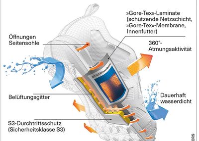 Der obere Teil, der mit dem Oberleder in Kontakt steht (Stablisierungsring), gewährleiste hingegen eine größere Stabilität des Fußes, vor allem bei Personen mit einem dynamischen Gang und nicht immer auf festem Untergrund. Dieser Ring hat nach Angaben des Herstellers die Aufgabe, die Ferse während den Bewegungen zu stabilisieren, die auf Dauer zu Ermüdung des Rückens und der Knie führen könne.
