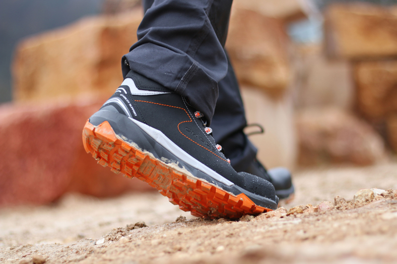 Dieses Material ermögliche in Kombination mit dem Design des Profils außerdem eine optimale SRC Performance (Slip Resistance Classification) für Rutschfestigkeit auf schwierigen oder geneigten Oberflächen. Das spezielle Design des Profils gestatte aufgrund der Öffnung und Schließung kleiner Kuben im Bereich mit der größten Rutschgefahr eine Haftung mit Saugeffekt. Die größeren Kuben im hinteren Bereich verhindern laut Hersteller das Haften von Schutt und ermöglichen so auch in den schwierigsten Situationen eine gute Haftung.