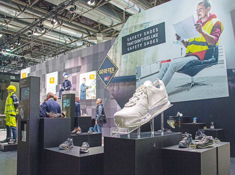 »Gore-Tex Stretch Safety Footwear« ist aufgrund strapazierfähiger Obermaterialien, Zehenkappen und einer durchtrittsicheren Sohle für die Schutzklasse S3 gemäß EN ISO 20345:2011 zertifiziert. Die hohen Gore Qualitätssicherheitsstandards ermöglichen eine lange Produktlebensdauer. Auf der A+A wurden die ersten Prototypen und Kollektionen der »Gore-Tex-Stretch Safety Footwear« von Gore und den Schuhpartnern Elten, Jalatte, Pezzol, Solid Gear, Steitz Secura und U-Power vorgestellt. Darüber hinaus waren auf der Messe auch Sicherheitsschuhe zu sehen, welche die »Gore-Tex-Stretch«-Technologie und die »Gore-Tex-Surround«-Technologie miteinander kombinieren. J