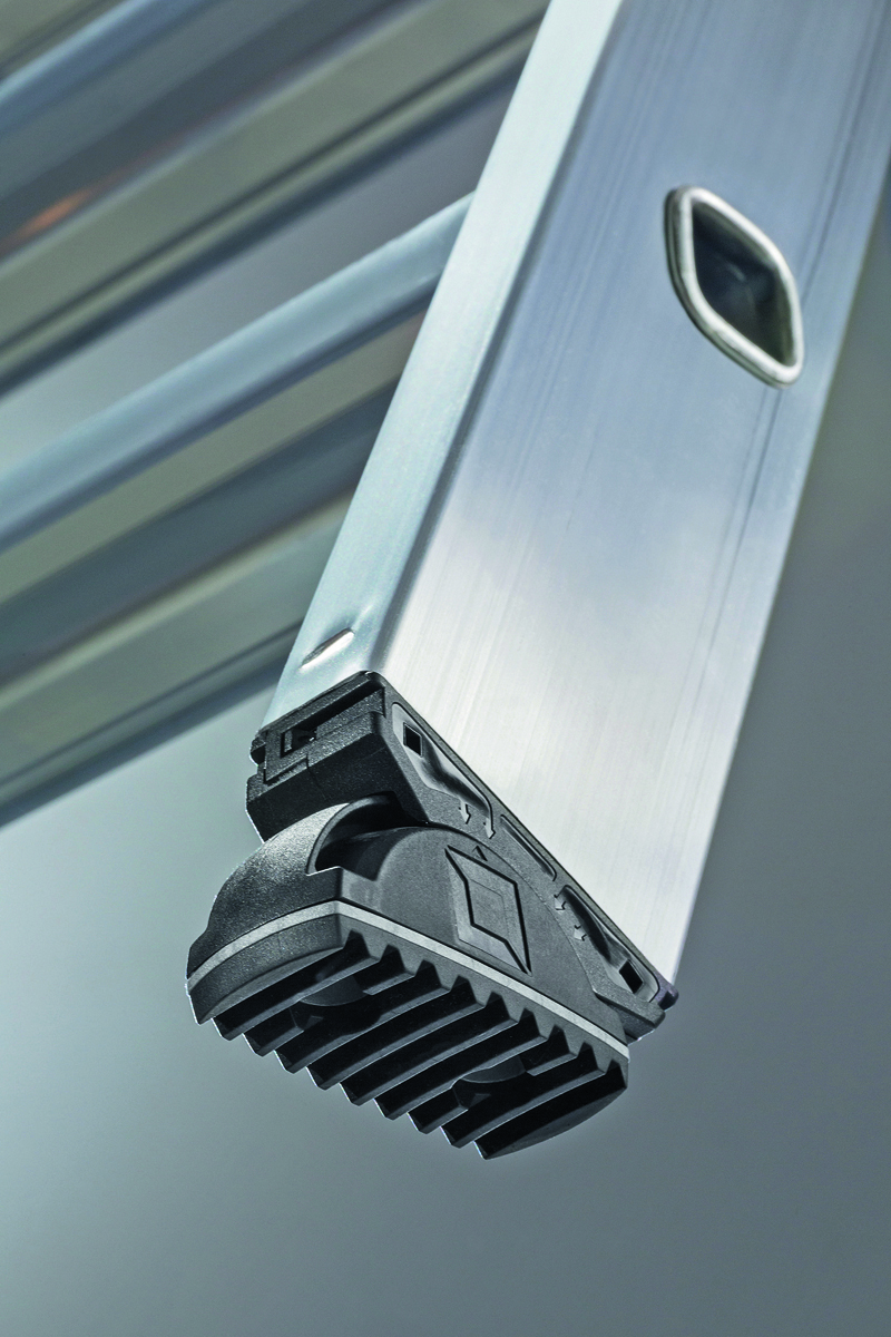 Dadurch lassen sich die Leitern der Günzburger mit der neuen »Nivello«-Modellgeneration an unterschiedliche Untergründe anpassen und flexibel für verschiedenste Einsatzbereiche vorbereiten. Weitere Pluspunkte: Der neue »Nivello«-Leiterschuh zeigt über eine integrierte Winkelkontrolle dem Anwender stets den korrekten Anstellwinkel der Leiter an und die geriffelte Auflagefläche der Fußplatten dient automatisch als Verschleißindikator. Dieser Leiterschuh zählt wie bisher zur Standardausstattung der Günzburger Steigtechnik, das bedeutet: Alle Leitern mit »Nivello«-Leiterschuh sind künftig mit der neuen Version ausgestattet.