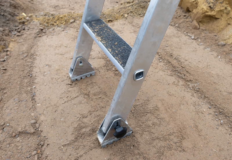 Die neue Stufen-Mehrzweckleiter kann als Steh-, Anlege- oder als Schiebeleiter eingesetzt werden. Sie ist in drei Größen bis zu 6,9 m Länge erhältlich und zeichnet sich laut Herstellerangaben durch ihr einfaches Handling und ein Plus an Arbeitssicherheit aus. So ist das Produkt zum Beispiel mit 80 mm tiefen Stufen ausgestattet, die in den Überlappungsbereichen der drei Leiterteile für extra breite Standflächen von rund 170 mm Tiefe und damit für optimale Standsicherheit sorgen. Dazu trägt auch die »nivello«-Traverse bei, die serienmäßig mit der neuen Generation des »nivello«-Leiterschuhs versehen ist. Der »nivello«, so der Hersteller, sorgt dank seiner patentierten 2-Achsen-Neigungstechnik im Gelenk für eine optimale Bodenauflage und ist mit wechselbaren Fußplatten ausgestattet. Diese kann der Anwender je nach Untergrund und bei Verschleiß einfach und schnell austauschen. Ganz neu ist jetzt zum Beispiel eine Krallen-Fußplatte für gewachsene Böden.