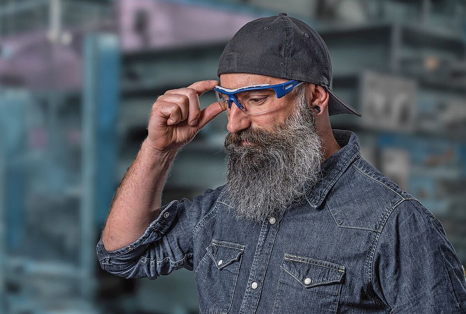 Maximale Sicherheit und festen Halt bietet zudem die Vollsichtbrille »A-View 5« mit großer Sichtscheibe und uneingeschränkter Seitenwahrnehmung. Ihr breites, einstellbares Kopfband soll einen bestmöglichen Sitz und Tragekomfort sicherstellen. Für einen zuverlässigen Schutz der Augen vor feinem Staub und Flüssigkeiten sorgt ihre weiche, rundum abschließende druckfreie Gesichtsauflage. Dabei kann sie auch über einer konventionellen Korrektionsbrille getragen werden. Ein indirektes Belüftungssystem und die kratzfeste und beschichtete Polycarbonat-Scheibe verhindern zuverlässig, dass die Gläser beschlagen. Eine leichte und zugleich auch als Besucherbrille geeignete Überbrillen-Variante bietet Hahn + Kolb mit der Bügelschutzbrille »A-View 4«. Ihr hoher seitlicher und oberer Schutz ermöglichen auch hier das sichere Tragen über einer konventionellen Brille.