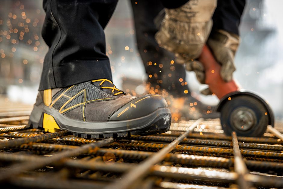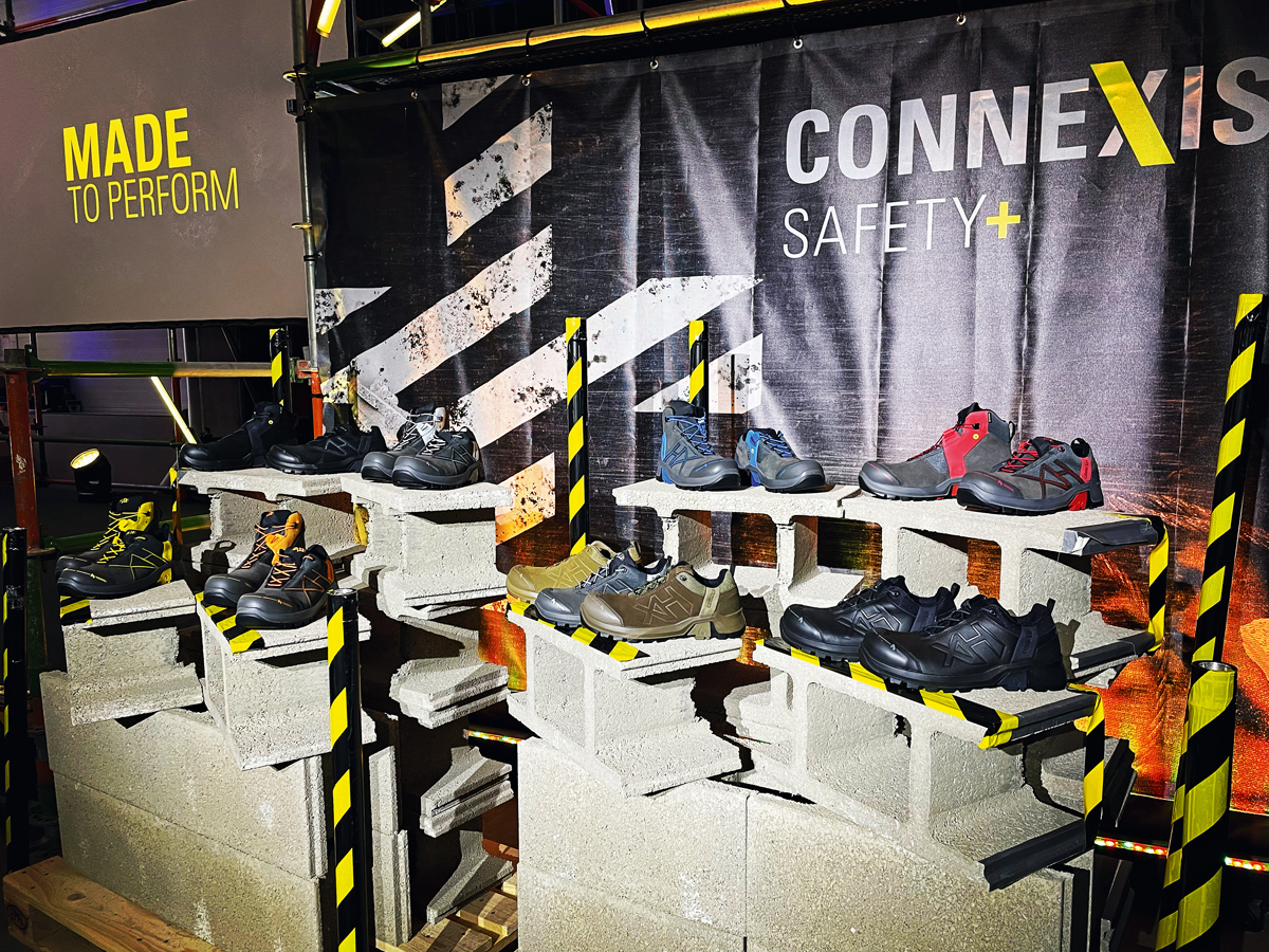 Ein typisches Haix-Event bedeutet grundsätzlich zwei Dinge: kleckern, aber eben auch klotzen. Statt allein auf eine für Haix gewohnt spektakuläre Präsentation der neuen Schuhe zu setzen, bat der Hersteller die Fachpresse darum, die Schuhe vor Ort in typischen Arbeitsumgebungen auszuprobieren, wie sie dem Träger auf der Baustelle täglich begegnen. Als Hersteller von Schuhen ist Haix bereits seit über 70 Jahren bekannt. Mit »Connexis Safety« hatte der Hersteller 2019 einen neuen Sicherheitsschuh auf den Weg gebracht, der auf Grundlage weitreichender Faszienforschung entstanden ist. Ein feines, für den Träger kaum sichtbares Tape, das durch den Schuh verläuft, stimuliert das Bindegewebe des Fußes. Ziel war und ist es, die Fußgesundheit zu erhöhen, die Ermüdung des Fußes hinauszuzögern sowie für Stabilität und Tragekomfort zu sorgen. Mit dem neuen »Connexis Safety +« ruft sich nun eine Weiterentwicklung dieses Grundgedankens auf den Plan.