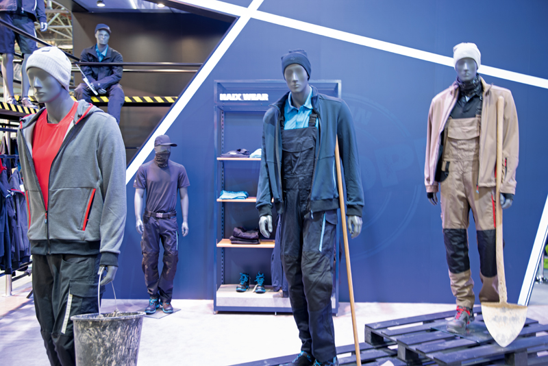 Als Spezialist für Funktionsschuhe und -bekleidung hat Haix die Messe in Düsseldorf genutzt, um auf seine neue Bekleidungskollektion »WorkLife21« aufmerksam zu machen. »Work21«, so Tanja Haimerl, steht für Berufskleidung, die sich aber nicht wie klassische Berufskleidung anfühlt: Die Kleidungsstücke sollen nicht nur mit durchdachten Funktionen, sondern auch durch eine Passform überzeugen, die sich an moderner Freizeitkleidung orientiert, um hohen Tragekomfort und volle Bewegungsfreiheit am Arbeitsplatz zu ermöglichen. Die »Work21«-Berufskleidung umfasst Arbeitsjacke, Weste, kurze und lange Arbeitshose sowie Latzhose – jeweils in den drei Farben Black, Navy und Brown. Alle Teile bestehen aus 65 Prozent Polyester und 35 Prozent Baumwolle und sind waschbar bei 60°. Mit einer Grammatur von nur 245 g sind sie sehr leicht, aufgrund einer extra dichten Webung aber äußerst strapazierfähig.