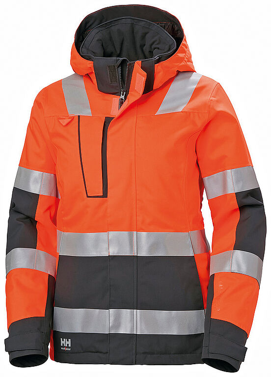 Die »Luna«-Kollektion ist eine von Frauen für Frauen entwickelte Kollektion und vereint die spezifischen Schnitte und Features, die Frauen im Workwear-Bereich benötigen, mit Funktionalität und Sicherheit. Die »W Luna Hi-Vis Insulated Winter Jacket« beschreibt Helly Hansen als idealen Begleiter bei niedrigen Temperaturen und schlechter Sicht. Durch die integrierte »Life Pocket«-Technologie beispielsweise verlieren elektronische Geräte selbst bei sehr niedrigen Temperaturen deutlich weniger schnell an Akkuleistung. »Helly Tech Performance« sorgt für hohen Tragekomfort und schützt optimal vor Kälte und Nässe. Die Jacke verfügt über eine vollständig verschweißte Konstruktion, einen verlängerten Rücken und eine abnehmbare sowie verstellbare Kapuze, diverse Einschubtaschen mit Reißverschluss sowie verstellbare Bündchen an Ärmeln und Saum.