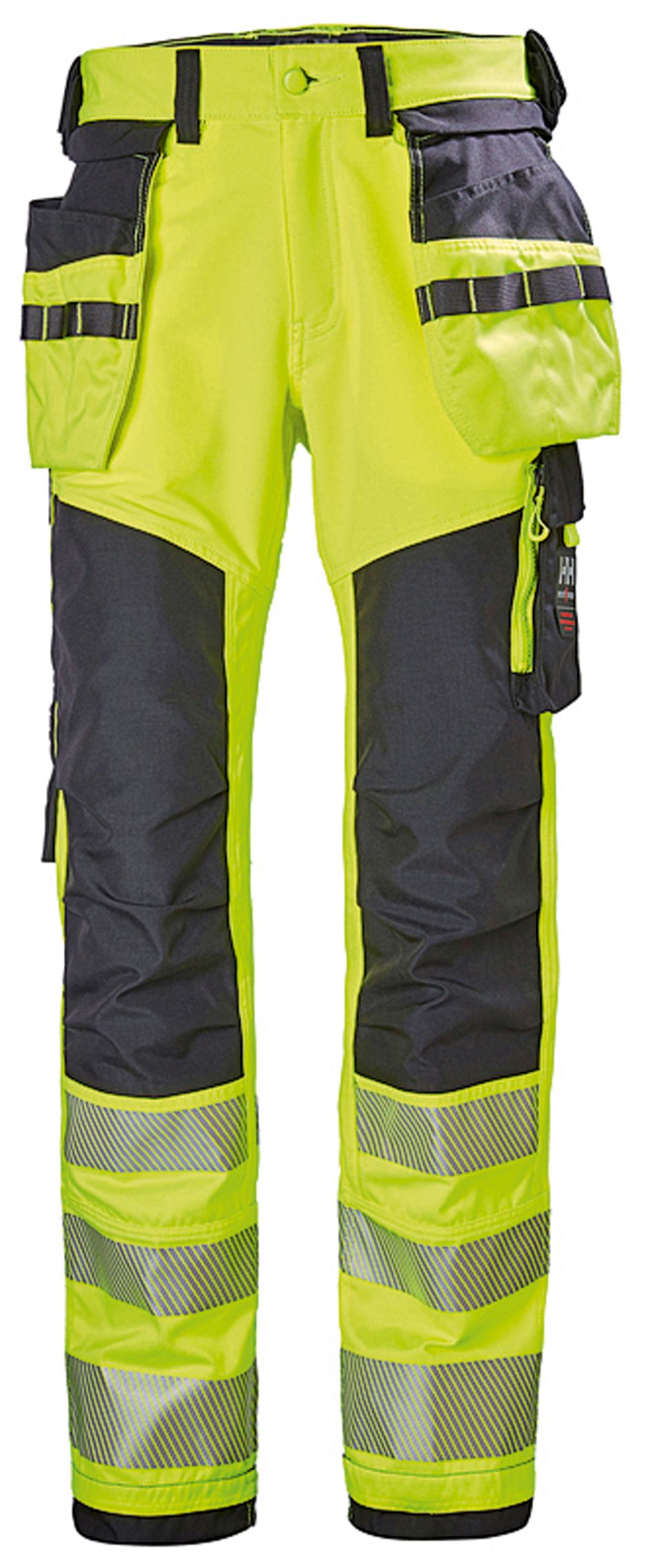 Die Hose ist mit einer zertifizierten gelben Signalfarbe sowie 3M-Reflektorenstreifen für erhöhte Sichtbarkeit ausgestattet. Die abnehmbaren Hängetaschen, ein breiter Gürtelzug sowie eingearbeitete Knietaschen sollen darüber hinaus Sorge dafür tragen, dass die Arbeitshose auch in Sachen Funktionalität überzeugen kann.