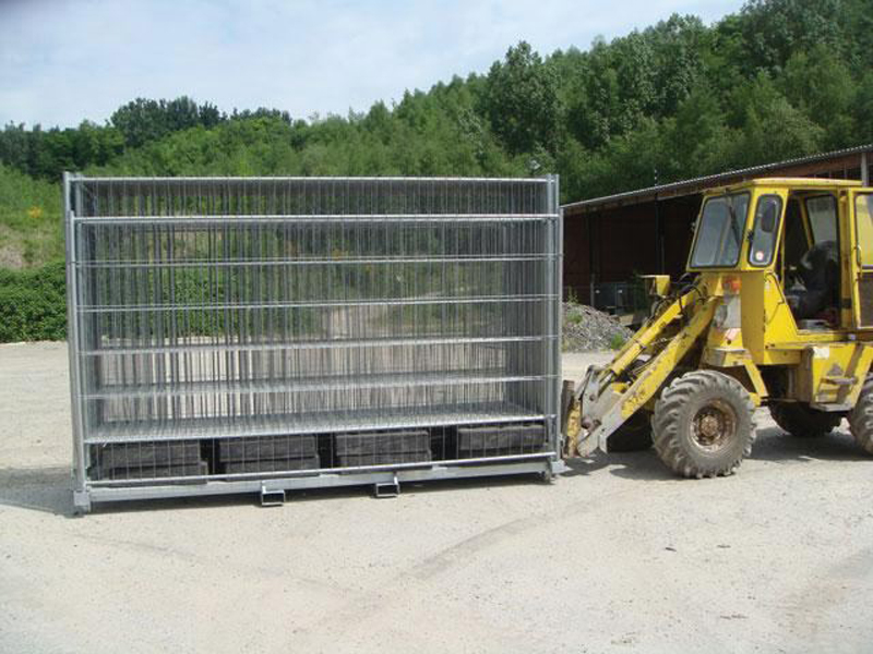 Durch das Lagern und Transportieren im Gestell lassen sich Beschädigungen an den Zäunen vermeiden. Der Gabelstapler hebt das Gestell an und kommt nicht in Berührung mit den Zäunen. Das Gestell bietet somit mehr Stabilität. Ohne Gestell besteht das Risiko, dass sich die Rohre der Zäune biegen und im schlimmsten Fall an den Seiten brechen oder knicken. Die Lagerung und der Transport im Gestell hat somit auch großen Einfluss auf die Lebensdauer der Zäune. J