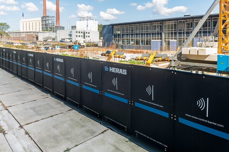 Die Verantwortung als Projektleiter geht über den Projektfortschritt hinaus. Mitarbeiter erleben die direkten und indirekten Auswirkungen eines übermäßigen Lärmpegels. Über die indirekten Folgen ist immer mehr bekannt. Es ist daher laut Heras wichtig, seine Mitarbeiter so weit wie möglich vor Lärm zu schützen. Lärm ist nicht nur in der Baubranche eines der größten Gesundheitsrisiken. Baulärm durch Kompressoren, Trennschleifer, Pumpen und Abbrucharbeiten auf der Baustelle kann mit der richtigen Platzierung der Lärmschutzmatte leicht reduziert werden. Die Heras Lärmschutzmatte »2.0« ist nämlich eine handliche feuerhemmende Matte im Format von 1,2 x 2,0 m, die den Lärm um bis zu 32,8 dB reduziert. Verursachter Baulärm ist zum Beispiel durch das Aufstellen von Bauzäunen in quadratischer Form und das Anbringen der Lärmschutzmatte um einen Kompressor herum eine kluge Lösung, um diesen zu isolieren.J