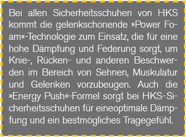 Der ab voraussichtlich Juni erhältliche »Drive 1 VTP Boa« erfüllt alle Anforderungen an einen Schuh der Schutzklasse S3. So schützt er durch sein wasserabweisendes Obermaterial aus Microtech vor eindringender Feuchtigkeit und Nässe. Das langlebige und widerstandsfähige Material kombiniert nach Angaben von HKS zudem High-Performance mit elastischem Komfort, und sorgt so für ein natürliches Laufgefühl und den bestmöglichen Tragekomfort. Ebenso ist eine wasserabweisende Staublasche fester Bestandteil der Ausstattung, um das Eindringen von Flüssigkeiten, Staub und Fremdkörpern zu verhindern. Ein textiler Durchstichschutz soll zusammen mit der Komposit-Kunststoffkappe für größtmögliche Flexibilität und Bewegungsfreiheit sorgen und gleichzeitig den Vorderfußbereich vor herabfallenden oder herumliegenden Gegenständen schützen. Darüber hinaus bietet der »Drive 1 VTP Boa« mit dem knöchelumschließenden Schaftabschluss, der das gesamte Fußgelenk stabilisiert, Schutz gegen Umknicken. Der Schuh ist antistatisch und ESD geprüft. Reflektierende Elemente gewährleisten bei Nacht oder schlechten Witterungsverhältnissen eine erhöhte Sichtbarkeit des Trägers.