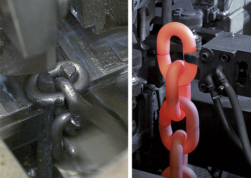 Um die passenden Anschlag- und Zurrmittel in zeitgemäßer Qualität anbieten zu können, bringt RUD in der Fertigung umfangreiches Know-how zum Einsatz_ Das Ergebnis von ausgeklügelten Prozessen beim Umformen, Schweißen, Wärmebehandeln, der Oberflächentechnik sowie dem Schmieden und Zerspanen sind neue Materialien wie der Werkstoff »ICE«. Dahinter steckt die »Innovative Chain Evolution«, die den Hersteller im Jahr 2007 zum Pionier der Güteklasse 12 gemacht hat.Basis ist ein gemeinsam mit ThyssenKrupp entwickelter hochfester Stahl, der leicht, robust und resistent ist. Bei mehr als 30 % Gewichtsersparnis bieten »ICE 120«-Ketten im Vergleich zur Güteklasse 8 bis zu 60 % mehr Tragfähigkeit und eine um 30 % höhere Oberflächenhärte. »Der Werkstoff erfüllt auch unsere Nachhaltigkeitsansprüche«, erläutert Bereichsleiter Kolb_ »Bei höherer Leistung werden weniger Material und Energie benötigt, gleichzeitig weist der patentierte Stahl eine hohe Zähigkeit auch bei niedrigsten Temperaturen auf.« Was laut Kolb in unseren Breitengraden das bedeutendere Argument sein dürfte: »Das reduzierte Gewicht erhöht die Ergonomie, schont den Rücken des Anwenders und spart Transportgewicht und somit Sprit«, erklärt er.