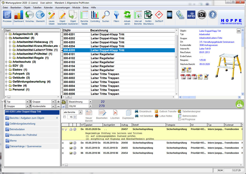 Am besten wird ein verantwortlicher Mitarbeiter mit diesem Thema betraut, der sich voll und ganz darauf konzentrieren kann, den Überblick behält und – besonders wichtig für die Rechtssicherheit – all sein Tun auch dokumentiert. Damit er mit dieser Aufgabe nicht alleine ist, sollte der Arbeitgeber ihm einen digitalen Wartungsplaner zur Seite stellen, in dem alle Betriebsmittel gespeichert sind, mit Fristen und zugehöriger Dokumentation. Die Hoppe Unternehmensberatung bietet eigenen Angaben zufolge zum Beispiel einen rechtssicheren »Wartungsplaner« für vielfältige Betriebsmittel an, der einen idealen Einstieg ins digitale Dokumentenmanagement bietet.