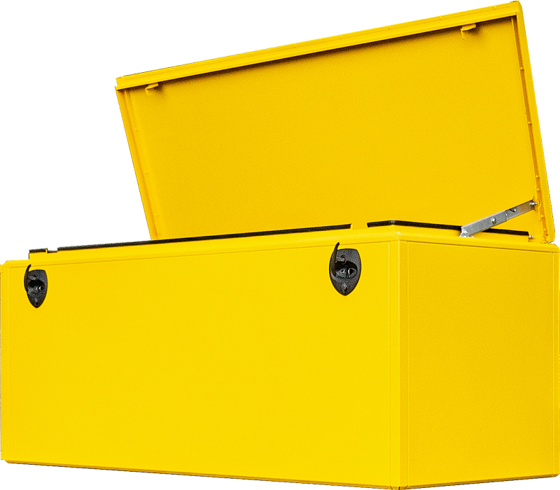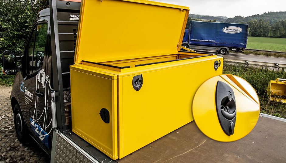 Welche zusätzlichen Möglichkeiten sich bei diesem Boxen-Prinzip bieten, zeigt sich deutlich bei der »Premium«-Variante: »Mit den Maßen 1840 x 735 x 740 mm und einem Korpus aus 1,25 mm verzinktem Stahlblech bietet die Box enormen Stauraum, ist gleichzeitig aber auch sehr robust und langlebig aufgebaut«, sagte Dietmar Beuther. Eine Besonderheit bei diesem Modell ist, dass sowohl Korpus als auch Deckel KTL- und pulverbeschichtet in RAL sind. »So lässt sich die Box optisch individuell gestalten, was zu einem einheitlichen und professionellen Erscheinungsbild des Firmen-Transporters beiträgt und heute immer mehr an Bedeutung gewinnt.« Weitere wichtige Merkmale der »Premium-Box« seien Deckelfeststeller mit einem Öffnungswinkel von ca. 75°, zwei Vector-T-Griff-Verschlüsse, die sich für Vorhängeschlösser eignen und damit die Diebstahlsicherheit deutlich erhöhen, sowie eine integrierte Griffmulde und wartungsarme Scharniere. »Ausgelegt ist das System auf Langlebigkeit, eine einfache Handhabung und maximale Raumnutzung«, so Beuther weiter.