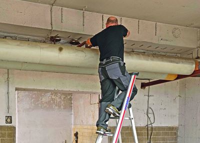 Der Aufbau ist schnell erledigt. Schraubverbindungen zwischen den Komponenten vereinfachen Montage sowie Reparaturen. Bei Bedarf kann ein Montageservice von Hymer-Leichtmetallbau mitbestellt werden. Bei Verschraubung im Boden oder Nutzung der als Zubehör erhältlichen massiven Fundamentplatten kommt sie ohne Ausleger aus und benötigt somit nach Anbieterangaben weniger Platz als andere Wartungsbühnen. x