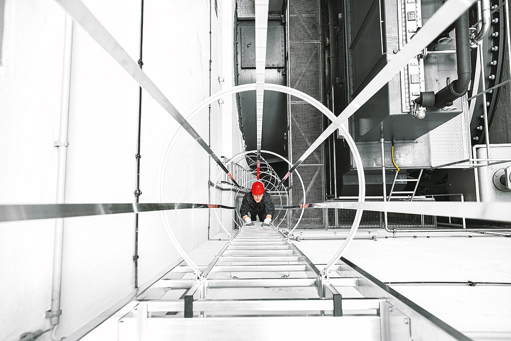 Die direkte Unterstützung beim Kunden wird durch den bundesweit aktiven Außendienst gewährleistet. Dieser betreut die Kunden rundum, angefangen bei der Auswahl des richtigen Produkts über das Aufmaß für Steigleitern und Sonderprodukte bis hin zur Vermittlung von Montagepartnern und externen Prüfstellen. »Man kann grundsätzlich davon ausgehen, dass einmal im Jahr geprüft werden muss«, so Christian Frei. »Je nach Einsatzort und möglichen Umgebungseinflüssen wie etwa stark vibrierenden Böden fallen aber auch kürzere Prüfintervalle an. Wir verweisen die Kunden dafür an Profis oder zertifizierte Prüfinstitute.«