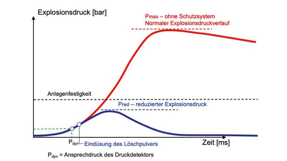 Pred entsteht sowohl bei der Druckentlastung als auch durch die Unterdrückung einer Gas- oder Staubexplosion in einem Behälter. Entzündet sich ein Gas- / Luft-Gemisch sorgt der entstehende Explosionsdruck für eine schnelle Ausbreitung der Gaswolke, die von der nacheilenden Flamme verbrannt wird. Wird kein weiteres Gas hinzugeführt, ist die Explosion bereits nach einigen Millisekunden beendet. Anders ist es bei Staubexplosionen: Aufgewirbelter Staub, beispielsweise durch einen Luftzug, kann zusammen mit Sauerstoff ein brennbares Staub- / Luft-Gemisch bilden. In Verbindung mit einer Zündquelle führt dies zu einer Explosion. Wie bei einer Kettenreaktion werden durch die entstehende Druckwelle weitere Staubschichten oder Ablagerungen aufgewirbelt, die sich wiederum entzünden und explodieren. Wie gewaltig diese Druckwelle ist, zeigt folgendes Beispiel: Zehn mbar reichen aus, um Luft auf fast 40 m pro Sekunde zu beschleunigen – das bedeutet, dass sie mit Orkangeschwindigkeit durch die Anlage und die Rohrleitungen fegt. J