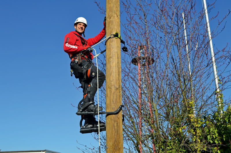 Fester Halt beim Mastklettern: Die Industriekletterer Bonn haben kürzlich einen neuen Multi-Kletterschuh von Genetta vorgestellt. Der Steigschutzschuh ist durch seine verschiedenen Klemmhalter für viele Untergründe, für Holzmaste und Composite-Rohre geeignet, auch wenn sie sich in Beschaffenheit, Form und Durchmesser unterscheiden. Die Länge des Klemmhalters ist frei einstellbar. Die Steigschuhe wurden für den vielseitigen Einsatz unter herausfordernden Wetterbedingungen entwickelt – an jedem Tag des Jahres. Somit gehören sie zur persönlichen Schutzausrüstung, mit der das Klettern ergonomisch, einfach und sicher sein soll. Der Kletterschuh eignet sich vor allem für Höhenarbeiten in den Bereichen des Netz- und Freileitungsbaus im Nieder- und Mittelspannungsbereich sowie in der Mobilfunktechnik. Besonders interessant ist er zudem auch für Höhenrettungsgruppen. Durch die wechselbaren Spitzen ist in naher Zukunft ein Einsatz im Bereich der Verkehrstechnik denkbar. Entsprechende Klemmhalter für Stahlrohre befinden sich in der Entwicklung. Industriekletterer Bonn bietet für die jeweiligen Arbeitsbereiche speziell zugeschnittene Beratungen und Unterweisungen. Genetta steht eigenen Angaben zufolge für eine neue, fabrikgefertigte Generation von Mastkletterschuhen, die weder bei Sicherheit noch Belastbarkeit Kompromisse machen will. Dies wird unter anderem durch die patentierte Wadenstütze erreicht. Sie sorgt für einen festen Stand und erhöht somit die Sicherheit während der Arbeit. Durch die natürliche Stand- und Trittfläche ist ermüdungsfreies Arbeiten möglich. Schließlich besticht der Kletterschuh durch einen umkomplizierten Wechsel vom handlichen Transport- in den Gebrauchsmodus. Bei jährlicher Inspektion und sachgemäßen Reparaturen mit Original-Ersatzteilen hat der Kletterschuh eine lebenslange Haltbarkeit. J