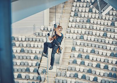 Ebenfalls neu auf den Markt gekommen ist das Befestigungsset »Unit-Industrie« zur Klemmung auf I-Träger und Rohrkonstruktionen. Die variable Einstellmöglichkeit der verschiedenen Klemmen soll nach eigenen Angaben eine ideale Anpassung an die jeweiligen Rohr- bzw. Trägerdimensionen bieten. Die vormontierten Klemmen ermöglichen eine rasche und durchdringungsfreie Montage auf den jeweiligen Konstruktionen. Auch zum Abseilen sei das System geeignet, Befestigungsabstände bis max. 15 m seien dabei möglich. Und: Das System könne jederzeit nachgerüstet werden.
