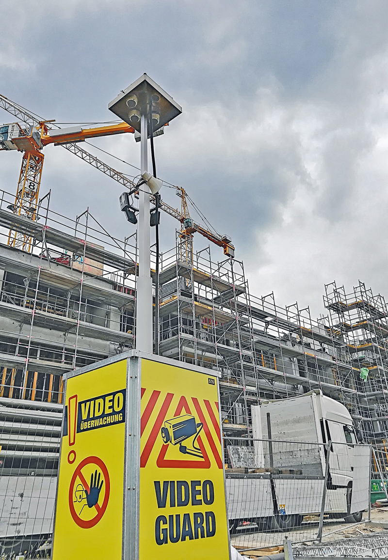 Zunächst stimmen die Sicherheitsexperten in Absprache mit den Bauverantwortlichen Anzahl und Anordnung der einzusetzenden Türme individuell auf die Fläche ab. Aufgrund der Drei-Kamera-Technik, die ohne Schwenken arbeitet, wird eine permanente sowie flächendeckende Bewachung sichergestellt. Nimmt das System eine unbefugte Person auf der Baustelle wahr, greift die unternehmenseigene Alarmzentrale unverzüglich ein. Hier dient die integrierte Lautsprecheranlage der ersten Abschreckung. Sollte dies nicht genügen, werden weitere Interventionsmaßnahmen eingeleitet.J