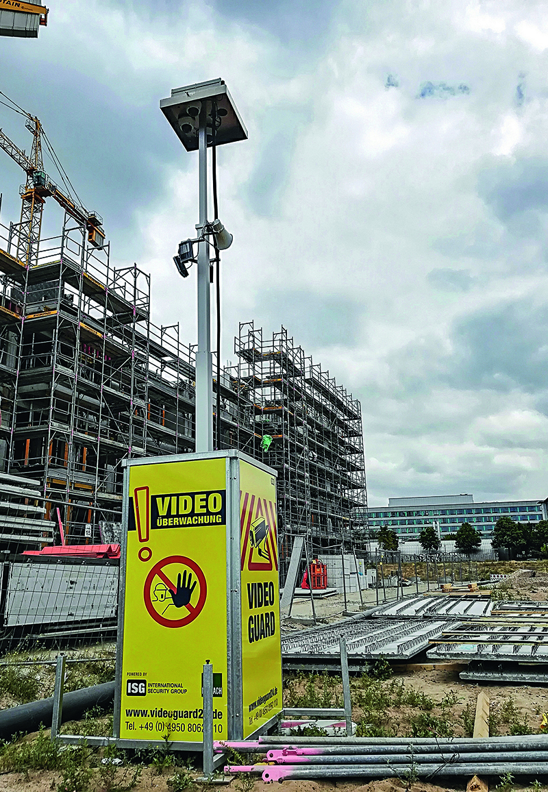 Der gängige Bauzaun ist hier laut der International Security Group (ISG) nicht ausreichend. Effektiv und wirtschaftlich arbeiten videobasierte Bewachungssysteme mit angeschlossener Sicherheitszentrale – wie »Video Guard Professional« von ISG und Maibach Velen. Die Sicherheitsexperten begleiten jedes Projekt von Anfang bis Ende und passen dabei die Anzahl und Ausrichtung der eingesetzten Kameratürme dem Bauverlauf an.