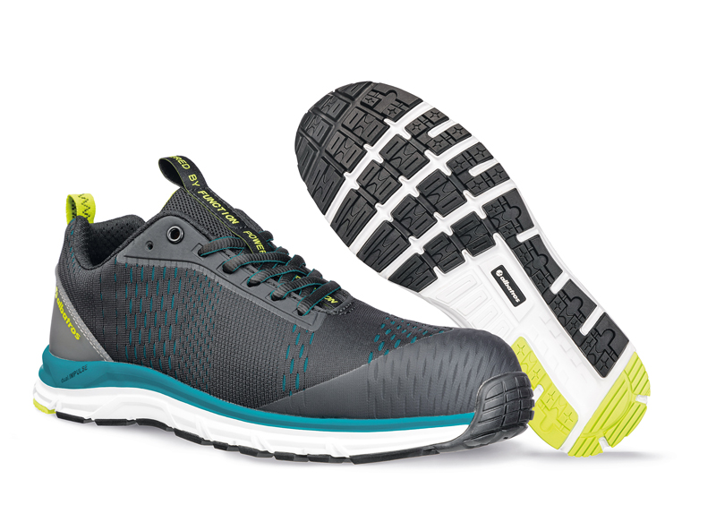 Der Sicherheitsschuh punktet laut Hersteller technisch mit seiner zweifach geschäumten Impulse-Foam-Zwischensohle, die dem Träger bis zu 55 Prozent seiner Energie zurückgeben soll. Optisch besticht er durch das nahtlos aufgebrachte 3D-Textilgewebe in der Farbkombination Schwarzblau. Der TPU-Vorderkappen- und Fersenschutz schützt das Obermaterial vor übermäßiger Ab-nutzung. Farblich abgesetzte Schlaufen an Zunge und Ferse erleichtern das Anziehen und bilden ein zusätzliches Design-Element.
