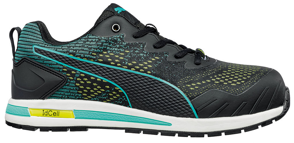 Auch der »Puma Safety Vivid GH Low« verfügt über eine bis zu 300 °C hitzebeständige Gummisohle. Darüber hinaus sorgen die verschieden geformten Profilelemente für optimale Beweglichkeit und sicheren Kontakt zum Boden. Zudem gewährleisten unzählige kleine Luftbläschen in der leichten EVA-Zwischensohle für eine optimale Dämpfung sowie eine verbesserte Abrollbewegung des Fußes. Um beim Aufsetzen der Ferse Schläge und Stöße abzufedern, wurde ein »idCELL«-Element im Fersenbereich integriert.