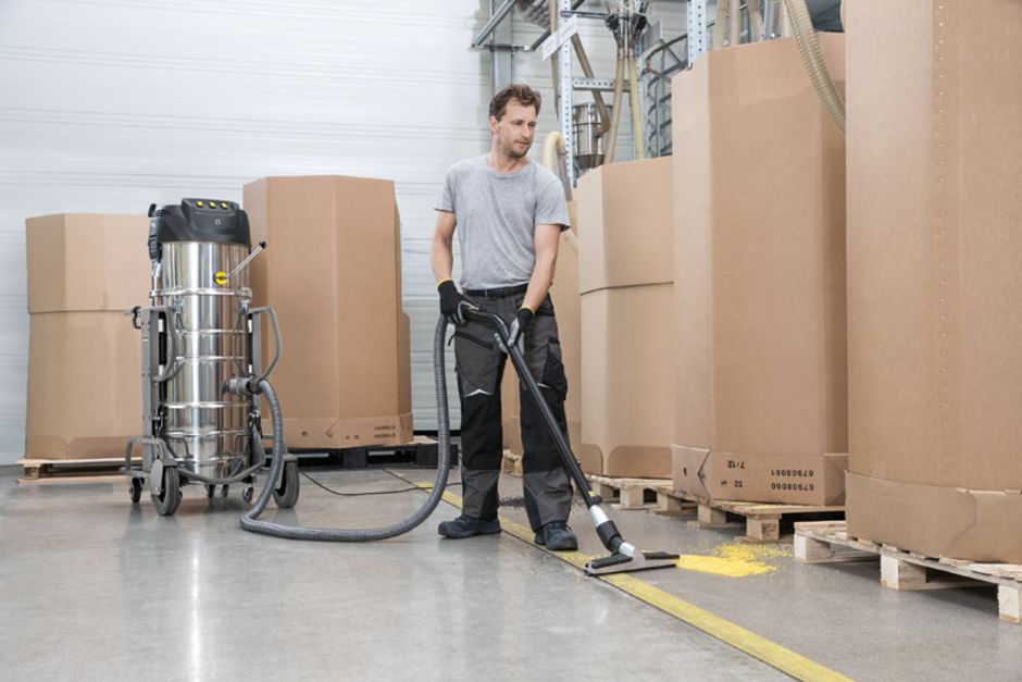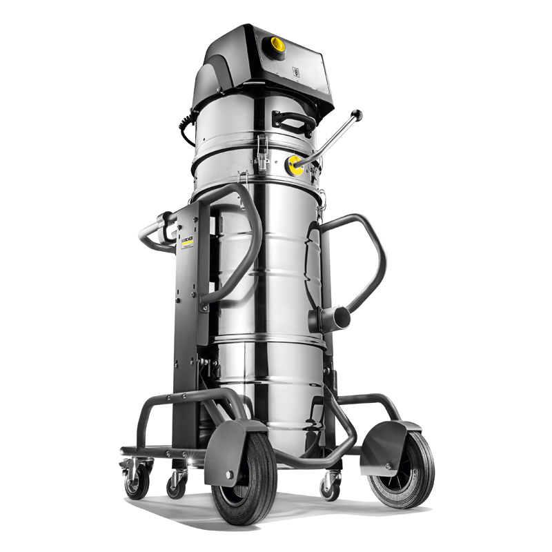 Bereits die Filterabreinigung hat die einfache, ergonomische Handhabung für den Anwender im Blick. Hinzu kommen Schiebegriffe auf beiden Seiten des Geräts, wodurch das Manövrieren jederzeit problemlos möglich ist. Am Saugbehälter sind ebenfalls Griffe angebracht, die sich nach links und rechts drehen lassen. So kann der Behälter von beiden Seiten in das Gerät geschoben und dort befestigt werden. Er ist zudem fahrbar, was vor allem bei schweren Materialien die Handhabung erleichtert. Zur platzsparenden Aufbewahrung von Zubehör sind Schlauchhaken und Halterungen für Düsen angebracht. Die minimierte Standfläche berücksichtigt die meist engen Platzverhältnisse in der Produktion.