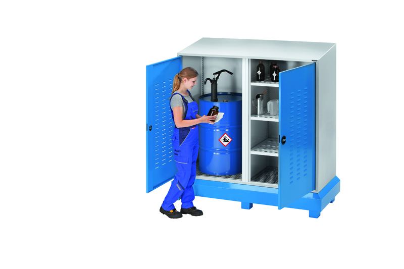 Die lange Liste an Vorschriften, Gesetzen und Normen zeigt: Die Sicherheit eines Betriebes beginnt mit einem zuverlässigen Gefahrstoffhandling. Stefan Weberheinz ist als Produktmanager in den Bereichen Umwelt und Sicherheit bei Kaiser + Kraft verantwortlich für die richtigen Produkte, um Gefahren auf der Baustelle zu vermeiden. Nach seinen Erfahrungswerten gibt es drei Bereiche, auf die besonderes Augenmerk gelegt werden muss: Zum einen Auffangwannen für entzündbare oder aggressive Substanzen wie Betonlöser, Lösungsmittel oder Batterieflüssigkeit. Zum anderen Gefahrstoffdepots, also flexible und abschließbare Behältnisse, in denen man Kanister, Fässer und Kleingebinde mit Gefahrstoffen lagern kann. Zu guter Letzt nennt Weberheinz Bindevliese oder -granulate, die auf Baustellen häufig eingesetzt werden, um ausgelaufene Flüssigkeiten aufzunehmen.