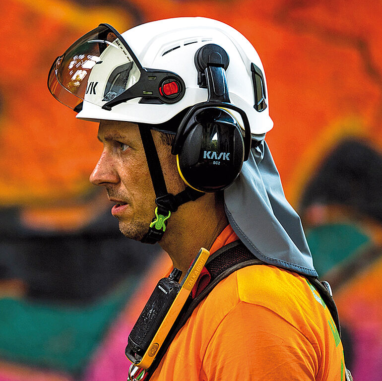 Sowohl der Sonnen- als auch der Nackenschutz sind für die anspruchsvollen Einsatzbedingungen auf der Baustelle konzipiert und dementsprechend langlebig konstruiert. Der »Sun Shield«, der sich leicht an den Lampenclips befestigen lässt, bietet eine 360°-Krempe, die Hals, Gesicht und Ohren vor der Sonne schützt. Das in Hi-Vis-Farboptionen erhältliche Zubehör passt nach Angaben des Herstellers auf alle Kask-Helme. Den Nackenschutz »Neck Shade« bietet Kask für die Serien »Primero«, »Zenith« und »Superplasma« an. Er schützt Nacken und Ohren sowohl gegen UV-A- als auch gegen UV-B-Strahlung und lässt sich leicht am Helm installieren.