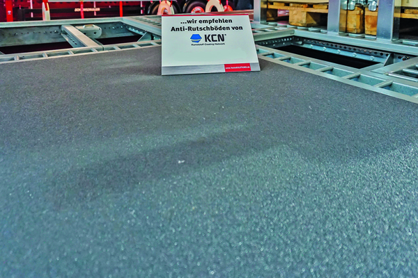 Das neuartige rutschhemmende Material bietet laut KCN einen höheren Gleitreibbeiwert und ist flexibler als die sonst für die Ladungssicherung verwendeten Kunststoffe. Zudem bietet die Innovation eine anpassungsfähige Oberfläche und ist resistent gegen Öl, Benzin und Säure. Der Hersteller verspricht eine Reihe weiterer Vorteile: Das Material verformt sich nicht, bricht nicht und soll extrem dehnbar und wartungsfrei sein. KCN will die Neuentwicklung nicht nur für die Produktion von Antirutschboden, sondern auch für andere Einsatzzwecke verwenden. Ebenfalls neu bei KCN ist der Geschäftsbereich Industriebeschichtungen. Das Familienunternehmen aus Holzmaden will mit dem eigenen Know-how eine formenunabhängige und robotergestützte Massenproduktion von Beschichtungen aller Art mit präziser Gleichmäßigkeit ermöglichen.