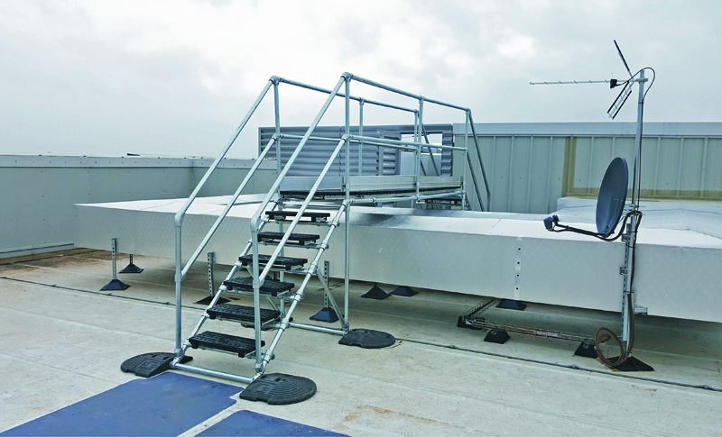 Zudem ermöglicht sie das sichere Begehen des Daches auch dann, wenn keine Persönlichen Schutzausrüstungen vorhanden sind. Übrigens: Damit auch mächtige Rohrleitungen, Klimakanäle oder Mauern auf dem Dach keine unüberwindbaren Hindernisse bleiben, hat Kee Safety sein Laufsteg-System bereits im vergangenen Jahr um mehrere Standard-Überstiege ergänzt. Analog zur Anwendung von »Kee Walk« eignen sie sich für Dächer mit Oberflächen aus Bitumen, PVC, Beton oder Metallprofilen. Sie bestehen aus den Stufen- und Brückenmodulen des Laufstegsystems sowie vormontierten Pfosten und Elementen aus dem TÜV-geprüften »Kee Klamp«-Rohrverbinder-Sortiment.