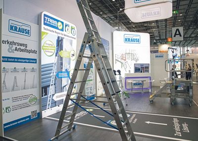 Erweiterungen und Zubehör sollen das System nach Ansicht von Krause zum idealen Arbeitsgerät für jede Situation machen. Mit dem Geländer-Erweiterungsset könne beispielsweise die untere, zweite Plattform als Lauffläche genutzt werden. Der Eisräumer zertrümmere mit seinen Hart-PVC-Köpfen Eisplatten und ermögliche aufgrund des extralangen Stiels sowie der Gummilippe das einfache Entfernen von Schnee und Eis. Gegen unbefugtes Betreten könne wiederum ein Schrankenset mit Warntafel am Treppenaufgang angebracht werden. J