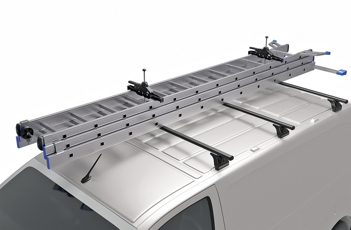 Beim Transport auf Sprintern kann die Ladungssicherung durch Zurrmittel in Form von Gurten, Ketten und Seilen erfolgen. Die pragmatischere Lösung ist für Krause jedoch ein Leiterhalter, der das Einfädeln von Befestigungsmitteln überflüssig macht und die Leitern einfach, sicher und schnell auf dem Träger fixiert. Um die Leitern vor Diebstahl zu schützen, können die Dachklemmen darüber hinaus durch integrierte Schlösser mit Gleichschließvorrichtung verriegelt werden.