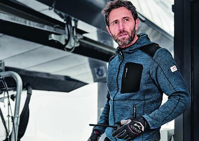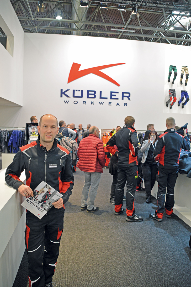 Ein besonderer Gewebemix sorgt für Wohlbefinden selbst bei vollem Körpereinsatz. Für Kübler »Bodyforce« wurde laut Hersteller eigens die neue Fischgrat-Rips-Gewebebindung entwickelt. »Sie verbindet sehr hohe Zug- und Reißfestigkeit mit angenehmer Haptik und moderner Optik«, erklärte Marketingleiter Daniel Pusch am Messestand auf der A+A. »Durch gekonnt eingearbeitete Stretchzonen erreicht die neue Linie ein unvergleichliches Komfortlevel. Hochelastische Strickeinsätze im Nacken-, Ellenbogen-, Ärmel- und Schulterbereich erleichtern Arbeiten über Kopf spürbar. In gebückter oder kniender Haltung gewährleisten elastische Einsätze im Saum-, Schritt- und Beinbereich sowie der im gesamten Gesäßbereich eingesetzte Stretch außerordentliche Bewegungsfreiheit.« Damen bieten die seitlichen Stretcheinsätze am Hosenbund ein weiteres Plus an Bequemlichkeit.