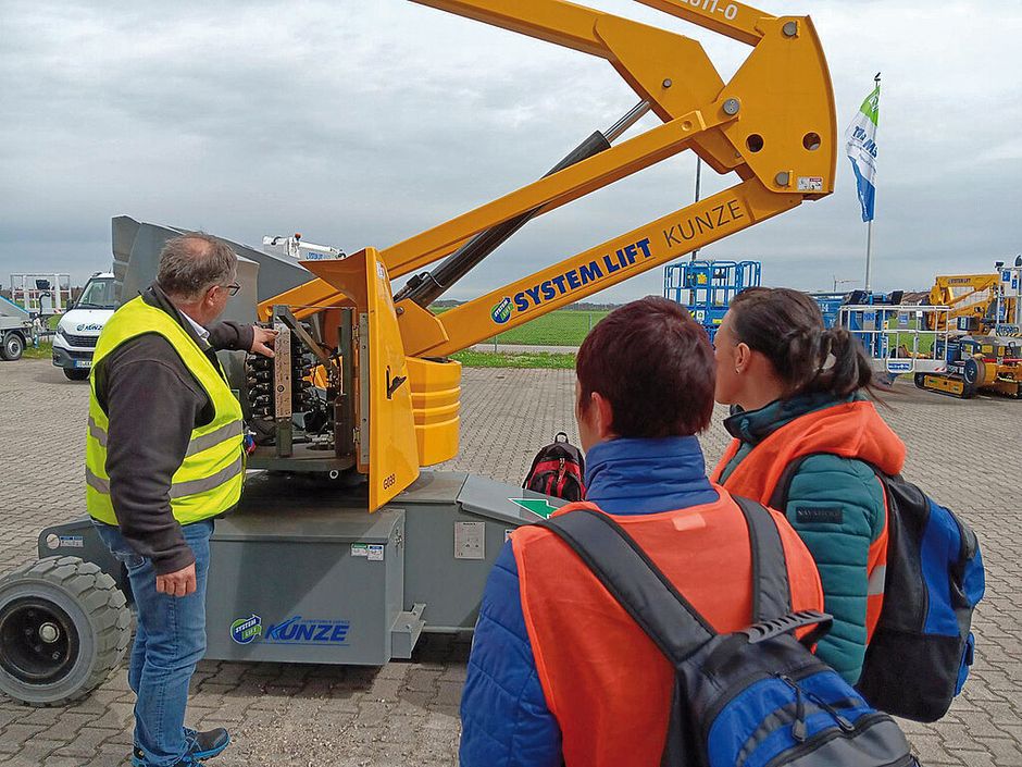 Die Schulung umfasste u. a. die notwendigen rechtlichen Grundlagen, technische Sicherheitsanforderungen sowie den korrekten Umgang und die Bedienung der Maschinen. Ein besonderer Schwerpunkt lag auf den sicherheitsrelevanten Informationen zum Arbeitsumfeld. »Sicherheit ist ein zentraler Aspekt unserer Arbeit, und es ist entscheidend, dass unsere Mitarbeiter bestens geschult sind, um Unfälle zu vermeiden und effizient arbeiten zu können,« so Juschka. Alle Schulungen werden nach internationalen Standards (ISO 18878) sowie den berufsgenossenschaftlichen Vorgaben z. B. für Hebebühnen DGUV G 308-008 (BGG 966) und DGUV R 100-500 (BGR 500) durchgeführt. Ein wichtiger Bestandteil der Schulung ist dabei auch die theoretische und praktische Unterweisung in die Anwendung Persönliche Schutzausrüstung gegen Absturz (PSAgA) auf Hubarbeitsbühnen.