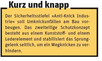 Bei Tätigkeiten im Freien, wenn der Untergrund uneben und je nach Wetterlage auch glatt ist, ist die Gefahr umzuknicken groß. Daher hat L. Priebs speziell zur Vorbeugung von Umknickunfällen den Sicherheitsstiefel »Anti-Knick Industrie« entwickelt. Dieser soll nicht nur Verletzungen im Knöchelbereich – wie Stauchungen, Bänder- oder Sprunggelenkverletzungen – verhindern, sondern könne auch in der Regenerationsphase nach Verletzungen eingesetzt werden.