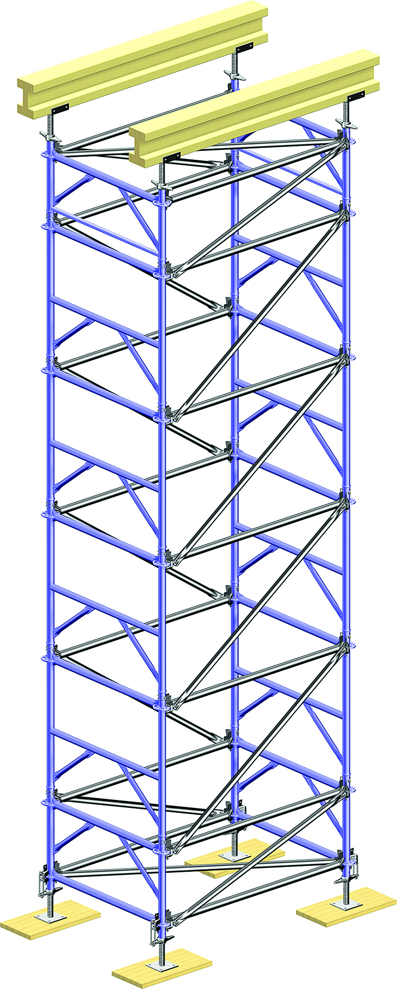 Für einen wirtschaftlichen, flexiblen und sicheren Traggerüstbau hat Layher das »Allround«-Traggerüst »TG 60« entwickelt– es wurde inzwischen vom DIBt zugelassen und typengeprüft. Dabei handelt es sich um ein in das »Allround«-Gerüst integriertes System. Als Ergänzung zu den »Allround«-Grundbauteilen sind nur die »Allround«-Traggerüstrahmen »TG 60« erforderlich: als Anfangsrahmen, als Standardrahmen sowie als Ausgleichsrahmen.