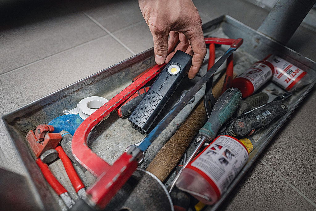 Zur Ausleuchtung größerer Arbeitsbereiche bietet Ledlenser die »W5R Work« an. Diese kommt neben einem magnetischen Standfuß mit einem Befestigungshaken. Mit der »W7R« steht nach Angaben des Herstellers ein leistungsstarkes Lichtwerkzeug mit stufenlos einstellbarer Farbtemperatur zur Verfügung. Dies sei zum Beispiel zur besseren Identifikation von Farbunterschieden beispielsweise bei der Unterscheidung von Kabeln hilfreich. Darüber hinaus ist das Modell mit UV-Licht (365 nm) ausgestattet, was bei der Leckageortung oder der Prüfung von Dokumenten hilfreich ist. Die Flood-LED mit homogenem Lichtbild leuchtet auch größere Arbeitsbereiche aus.