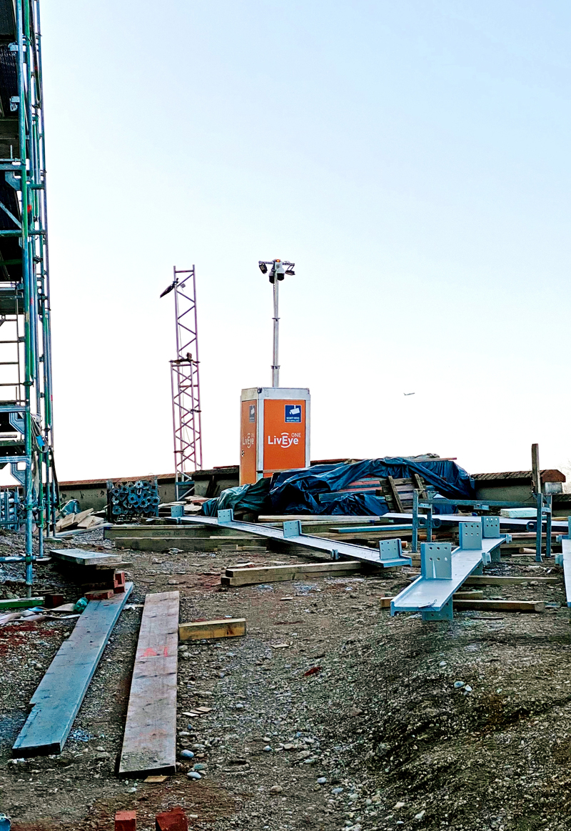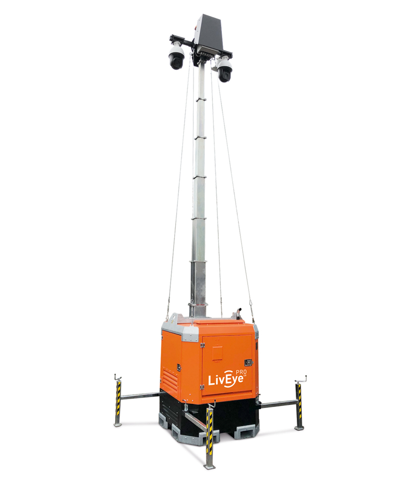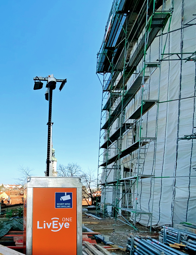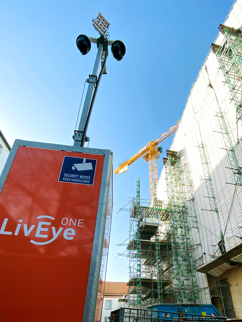 Jedes Gelände stellt unterschiedliche Sicherheitsanforderungen – bei Baustellen kommt hinzu, dass sich das Gelände permanent verändert und dessen Sicherung an die jeweilige Bauphase angepasst werden muss. Mit den mobilen Überwachungssystemen von »LivEye« ist der Schutz jeglichen Geländes jedoch kein Problem. Speziell für Baustellen und Freiflächen konzipierte Systeme auf 6 bis 8,50 m hohen Kameratürmen können mit einem Gabelstapler oder Kran überall aufgestellt und je nach Bedarf flexibel umpositioniert werden.