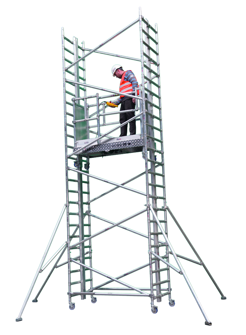 Bekanntlich sind es die kleinen Dinge, die eine Sache richtig perfekt machen. Beispielsweise der elektrische Antrieb, der die Arbeitsplattform des Rollgerüsts »AluLift« samt 250 kg Last bis an die 14 m Arbeitshöhe treibt und damit das gefährliche Treppenklettern mit Materialien und Werkzeug vergessen hilft. Die vollständig durch eine Person aufbaubare segmentäre Aluminiumkonstruktion senkt laut Hersteller die Arbeitsstunden und ermöglicht die maßgebende Anwendung.