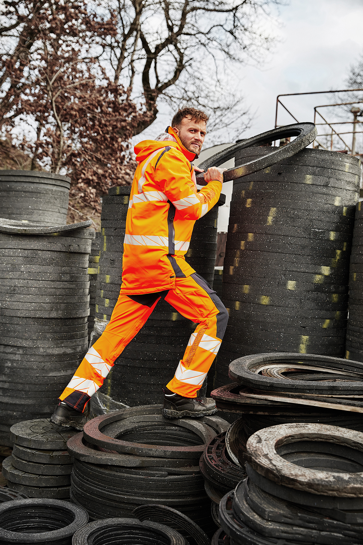 Arbeitskleidung aus »Ultimate Stretch« sind für den Außeneinsatz ideal geeignet, da sie eine wasserabweisende Oberfläche haben. Bei Regen kann der Träger deshalb ruhig auf Regenkleidung verzichten. Gerade wenn bei der Arbeit Warnschutzkleidung getragen werden muss, kann es oft schwierig sein, Kleidung zu finden, die auch den wechselnden Temperaturen entspricht. Je nach Wetterlage hat auch jeder einzelne unterschiedliche Vorlieben. Was für den einen funktioniert, ist vielleicht nicht das Richtige für den wiederum anderen. Es ist aus Sicht von Mascot daher in erster Linie wichtig, dass sich Arbeitskleidung für jeden einzelnen komfortabel anfühlt. Es geht darum, funktionelle Kombinationsmöglichkeiten zu haben. Ein Tipp: Produkte aus »Ultimate Stretch« sind sowohl in Herren- als auch Damenpassformen erhältlich, sodass jeder die Vorteile von Bewegungsfreiheit nutzen kann. Dies gilt auch für die im Sommer startende Kollektion »Accelerate Safe«: Von T-Shirts und Jacken bis hin zu Hosen und Röcken – jedem wird eine große Auswahl an Arbeitskleidung geboten. J