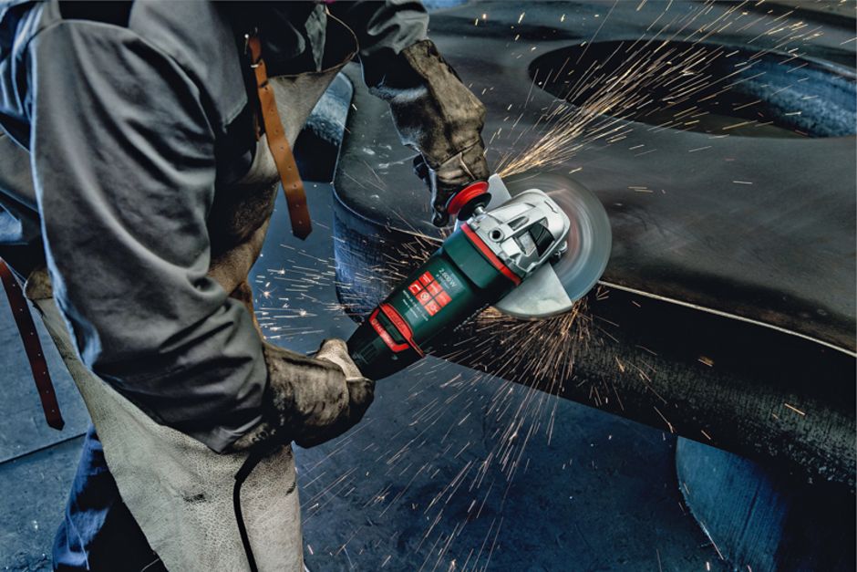 Wenn es permanent vibriert, kann das für den Anwender sehr anstrengend werden. Denn beim Arbeiten mit Winkelschleifern wirken hohe Kräfte auf Hand und Arm. Im schlimmsten Fall können die ständigen Vibrationen die Gesundheit des Anwenders dauerhaft schädigen: Dann verengen sich die Blutgefäße und es kommt zur sogenannten Weißfingerkrankheit. Auch hier ist Metabo in Sachen Anwenderschutz mit führend: Die neuen großen Winkelschleifer »Wepba 24-230«, »24-180« und »26-230 MVT Quick« haben ein aktives Anti-Vibrationssystem. So gleicht der »Autobalancer« Unwuchten bei Trenn- und Schruppscheiben aus und die Funktion »Metabo VibraTech (MVT)« entkoppelt die Griffbereiche und reduziert die Vibrationen zusätzlich. Das Ergebnis: bis zu 50 % weniger Vibrationen. Auf diese Weise können Anwender deutlich länger und produktiver arbeiten. Auch die Standzeiten von Schruppscheiben werden so verdoppelt und können die Kosten für das Zubehör halbieren. z