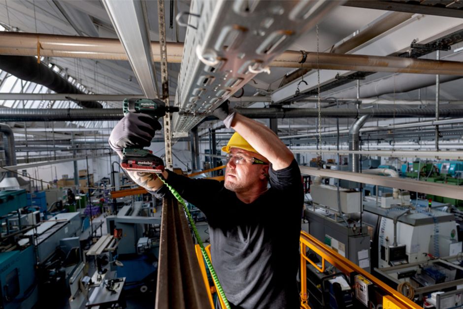 »Das Thema Absturzsicherung wird immer wichtiger«, erklärt Haas. »Mit unseren neuen Gurten können wir nahezu jedes Elektrowerkzeug sichern.« Die neuen Sicherungsgurte von Metabo sind nach den Standards der amerikanischen International Safety Equipment Association (ISEA) zertifiziert – dort ist die Absturzsicherung vorgeschrieben. »In Europa ist die Werkzeug-Sicherung zwar noch nicht Pflicht, aber immer mehr Unternehmen und Profis erkennen, wie wichtig sie ist«, sagt Haas. Jeder Werkzeug-Sicherungsgurt hat eine eigene Seriennummer. So kann die Sicherheitsausrüstung sauber protokolliert werden.
