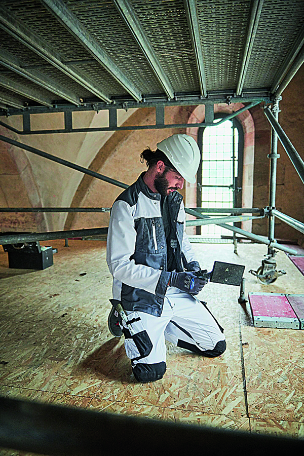 Aus diesem Grund leistet sich der Textildienstleister Mewa eine Abteilung für die Entwicklung eigener Kollektionen. Kundenwünsche, veränderte Anforderungen der Gewerke und neue Textiltrends fließen direkt in das Angebot ein. »Anfänglich konzentrierte sich unsere Arbeit darauf, bestehende Schnitte auf Wunsch individuell abzuwandeln«, so Mark Weber, »aber seit einigen Jahren setzen wir verstärkt auf Eigenentwicklungen im Bekleidungsbereich. Dabei geht es uns neben den funktionalen Ansprüchen um eine einheitlichere Passform und die Kombinierbarkeit über das gesamte Sortiment hinweg.« Neben Mark Weber arbeiten in der Produktentwicklung drei Bekleidungsingenieurinnen und eine Schnittmacherin an der Umsetzung neuer Ideen. Eine weitere Mitarbeiterin kümmert sich um das Aufspüren neuer Trends sowie innovativer Textilfasern und Hightech-Gewebe. Einen großen Einfluss bei der Entwicklung neuer Handwerkerbekleidung hat der Outdoor-Bereich. Weber: »Die Menschen haben sich durch die Freizeitmode an den Komfort von Funktionsgeweben wie Fleece und Softshell gewöhnt und erwarten dieses Tragegefühl auch für ihr Berufs-Outfit.« Eine Herausforderung für die Produktentwicklung des Textildienstleisters, denn bei der Arbeitskleidung stehen funktionale und schützende Aufgaben im Vordergrund. Feedback holt man sich aus der Praxis: Handwerksunternehmen können Neuentwicklungen ausprobieren und an ihrer Gestaltung mitwirken. Die Tragetests werden unter realen Bedingungen durchgeführt: mindestens drei Sets der Bekleidung liegen vor, davon ist eine im Einsatz, eine hängt im Schrank und eine ist in der Wäsche.
