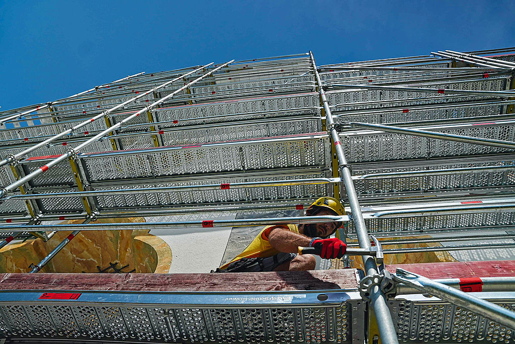 Mit »Optima« hat das Unternehmen MJ-Gerüst aus Plettenberg in Nordrhein-Westfalen ein TRBS-konformes System als Modul-Fassadengerüst entwickelt, das speziell auf die Anforderungen eines Fassadengerüstes zugeschnitten ist.