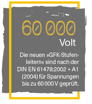 Ferdinand Munk, Inhaber und Geschäftsführer der Munk Group, weiß: »Bei Arbeiten in der Nähe von elektrischen Bauteilen ist von Haus aus höchste Vorsicht geboten. Mit unserer neuen Stufen-Version unserer GFK-Leiter bieten wir den Anwendern nicht nur einen verlässlichen Schutz vor Stromschlägen, sondern durch die größeren Trittflächen mehr Standsicherheit bei ihren Arbeiten auf den Stufen.«